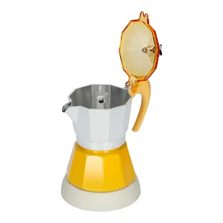 Kawiarka dostępna jest w 4. kolorach: żółtym, zielonym, niebieskim i czerwonym.